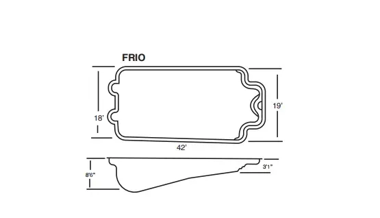 The Frio is all about balance. At 42’ x 18’ with a diving-ready deep end and ample shallow space, it accommodates both swimmers and loungers. Its total area exceeds 750 square feet.