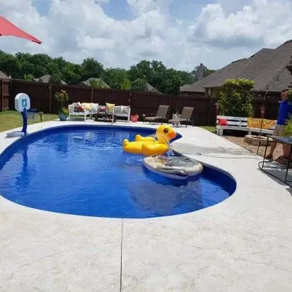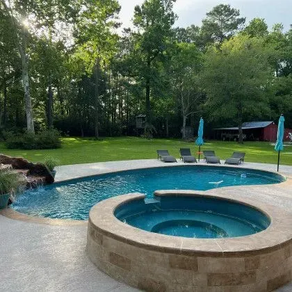 Gently curved with a built-in seating area, The Pecos offers a blend of style and practicality. At 3½ to 5½ or 6 feet deep, it’s equally good for cooling off or taking a lap. The interior contours encourage lounging and easy movement.