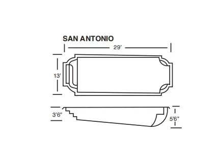 With its soft, sweeping curves and wide entry steps, The San Antonio offers visual appeal and all-age usability. It runs from 3½ to 5½ feet deep—perfect for swimming or relaxing. This model’s signature curves provide natural seating areas and a dynamic look that enhances landscaping.