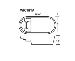 A superb choice for water aerobics. The constant depth gives you an option of swimming pool or the addition of swim-jets for a "swim machine" effect. The Wichita will fit almost anywhere, so check with American Fiberglass Pools before you let easements and building lines ruin your dream of pool ownership.